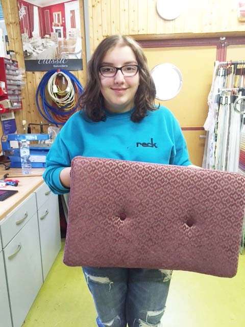 Um dies zu testen, nutze Lea Engelhart die Herbstferien für ein Praktikum. In dieser Woche half sie tatkräftig im Betrieb mit und konnte darüber hinaus ein Raffrollo für sich nähen und Omas Hocker aufmöbeln.