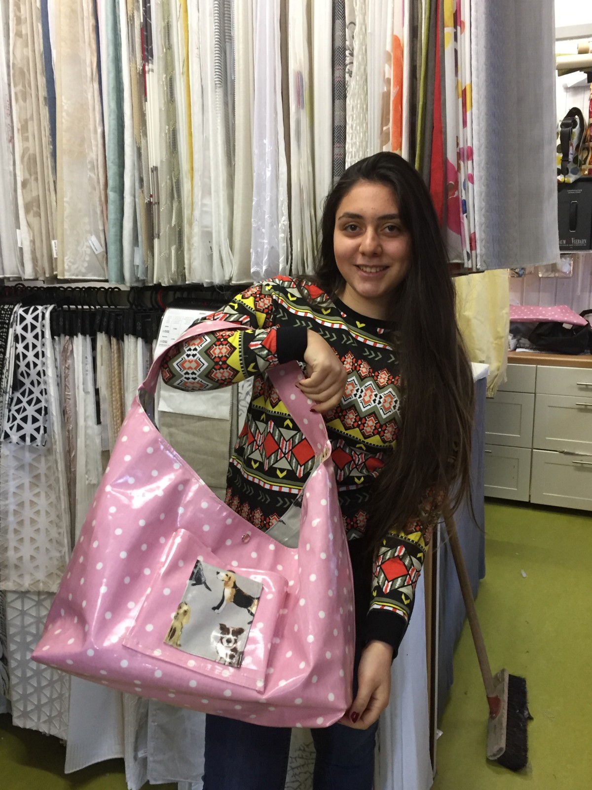 Jowelle Tachaji hat im Rahmen der Boris-Wochen der Werkrealschule Bad Saulgau bei uns Raumausstatter-Luft geschnuppert. Sie hat sich in dieser Woche unter anderem eine Tasche und ein Kissen genäht. Zudem hat Jowelle bzw. ihre Mutter uns täglich mit kulinarischen Köstlichkeiten aus ihrer syrischen Heimat verwöhnt, was dazu führte, dass die Vesperpause sich etwas ausgedehnt hat.:) Dezember 2016